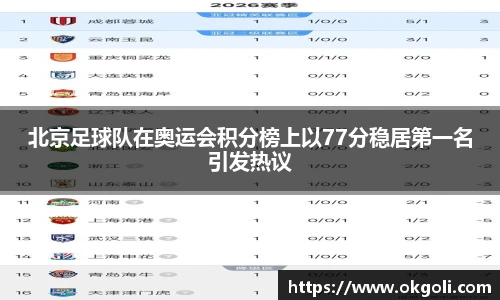 北京足球队在奥运会积分榜上以77分稳居第一名,这一成绩无疑引发了广泛的热议。作为中国足球的代表队伍,北京足球队在本届奥运会上展现出了强大的实力和团队合作精神,赢得了众多球迷的关注与支持。文章将从四个方面进行详细阐述:首先是北京足球队的历史背景及其发展历程;其次是球队在本届奥运会中的表现与战绩;第三,...